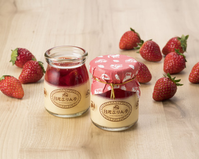 苺もプリンの味も楽しめるように日光ぷりんとは違った製法の卵の味が際立つしっかりした食感のプリンにしました。